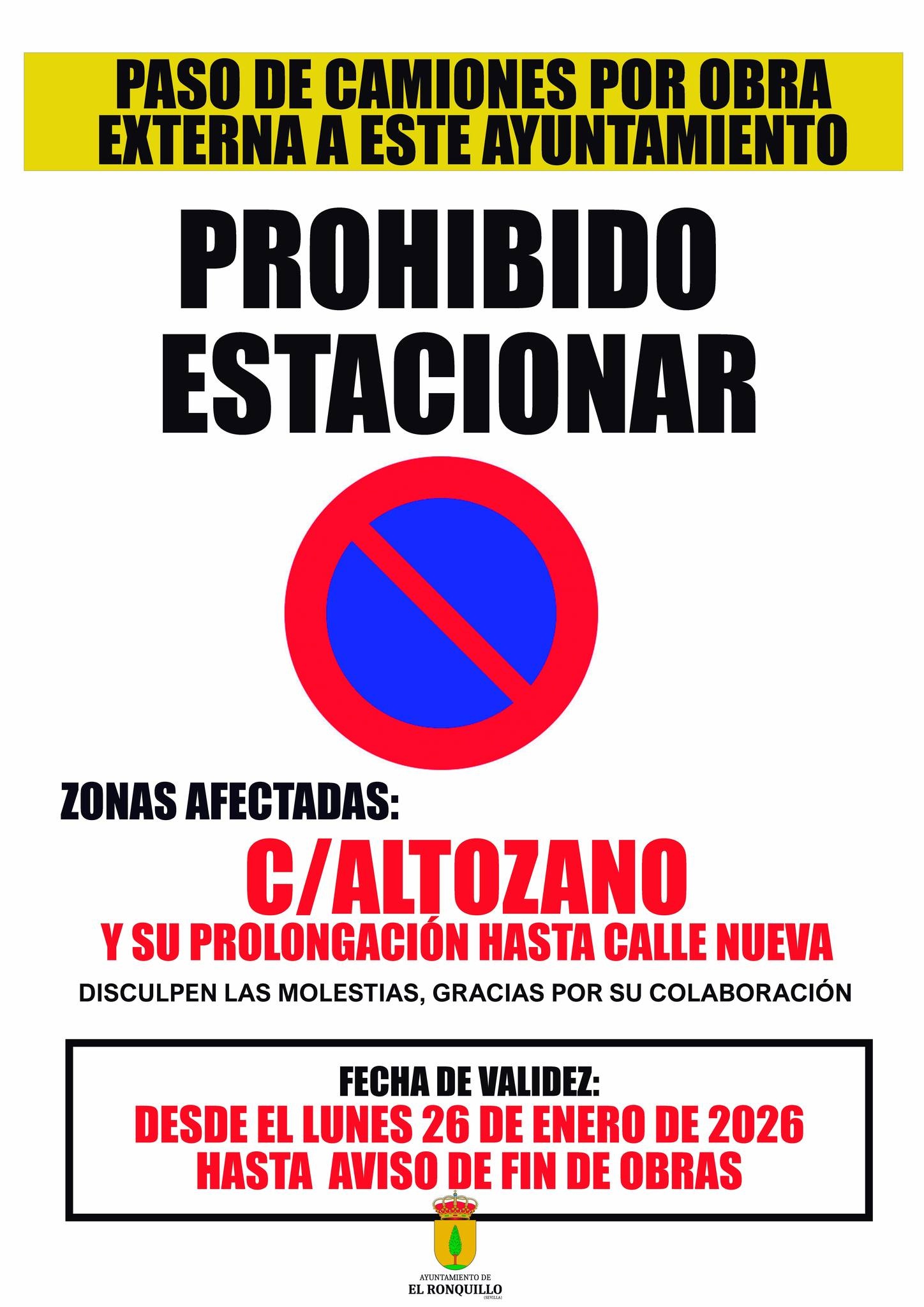 Corte de tráfico en c/Pozo Celeste y Prohibido aparcar en c/Altozano y su prolongación hasta c/Nueva