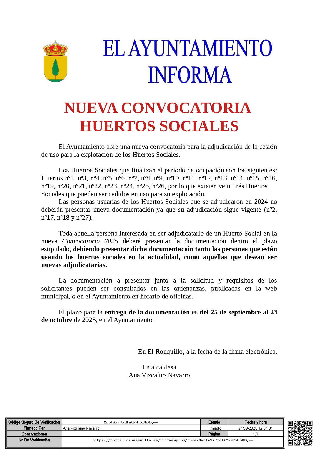 Bando huertos sociales