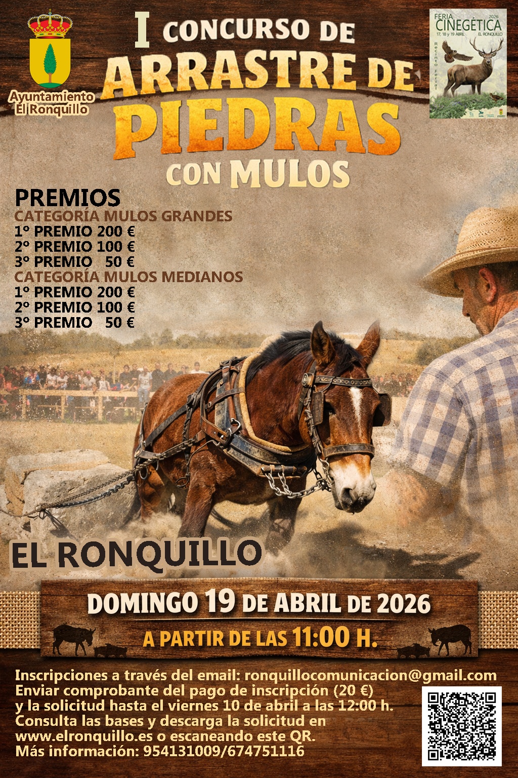 El Ronquillo organiza el I Concurso de Arrastre de Piedras con Mulos en la Feria Cinegética 2026
