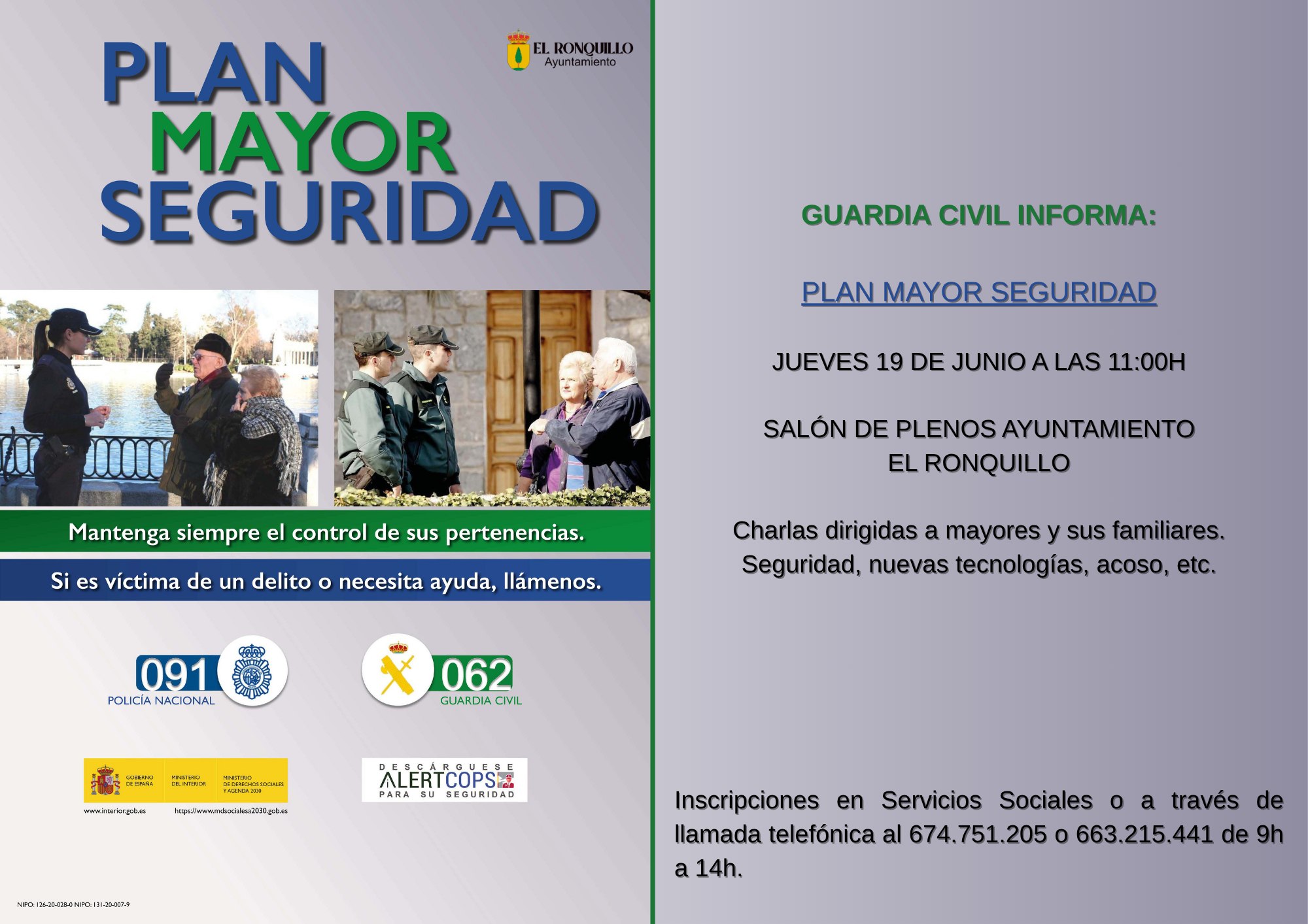 Inscripciones: en Servicios Sociales o llamando al 674751205 ó 663215441.
