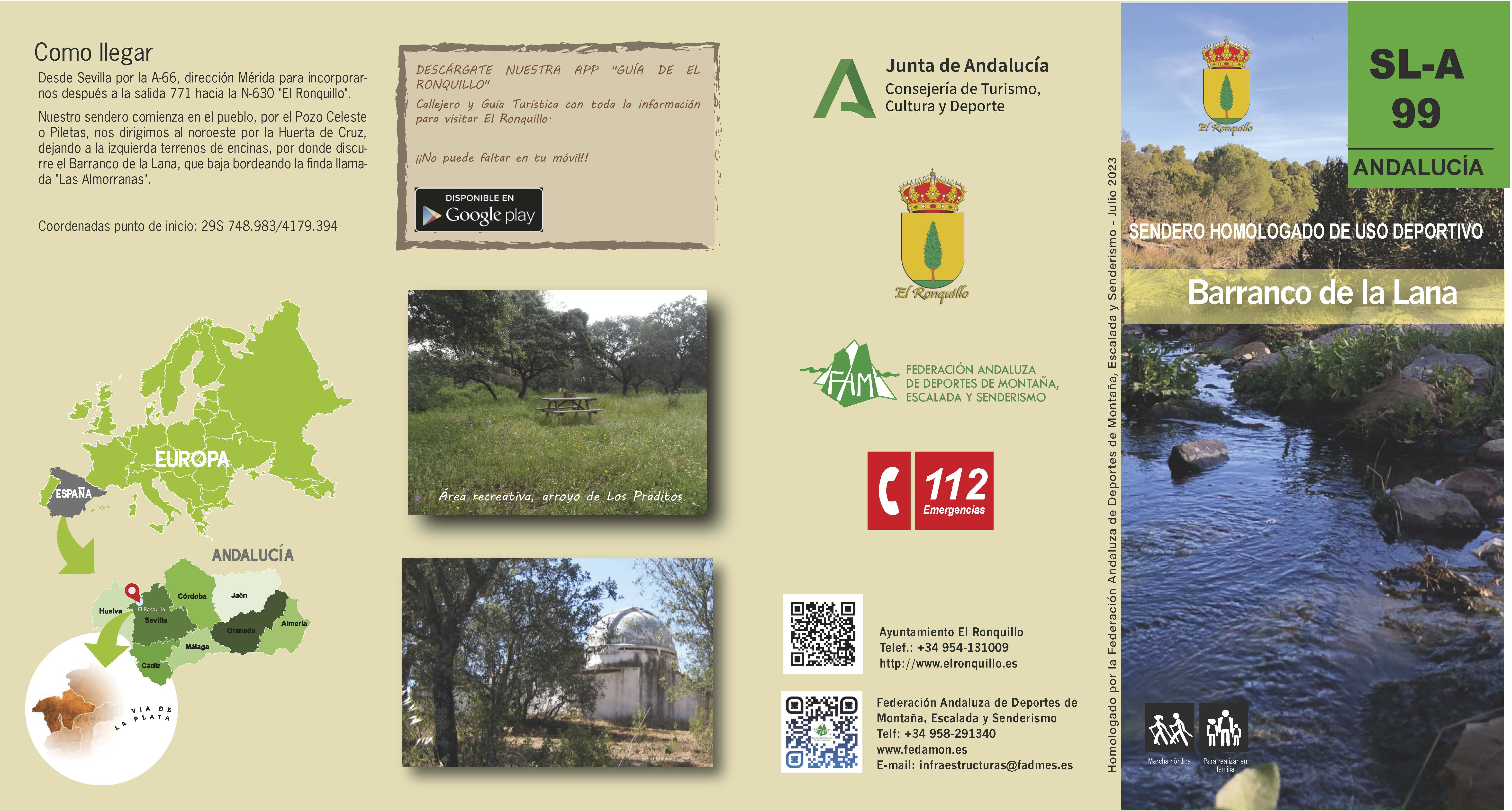 La Junta de Andalucía ha declarado "Sendero de uso deportivo" el sendero de El Ronquillo denominado SL-A 099 Barranco de la Lana.