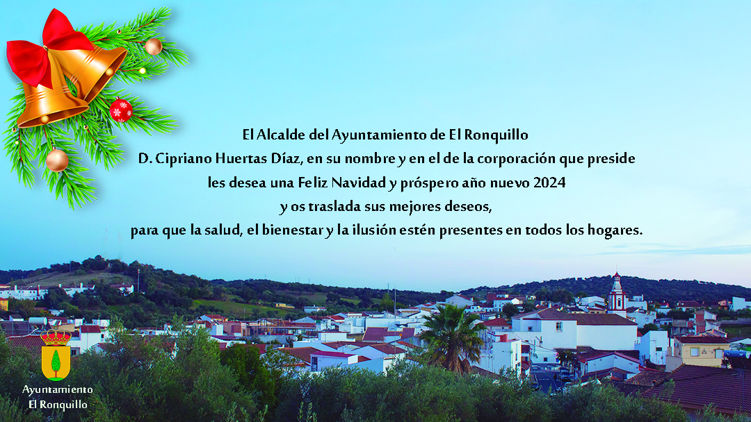 El Ayuntamiento de El Ronquillo les desea una Feliz Navidad y próspero año nuevo 2024 y les traslada sus mejores deseos para que la salud, el bienestar y la ilusión estén presentes en todos los hogares.