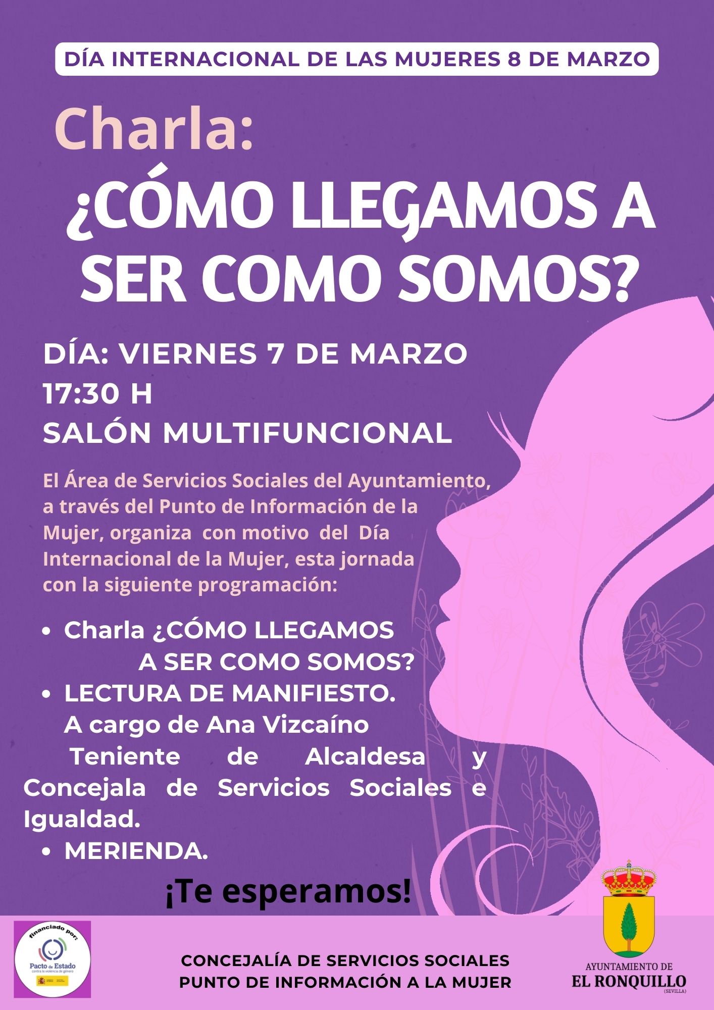 El Área de Servicios Sociales del Ayuntamiento, a través del Punto de Información de la Mujer, organiza con motivo del 8 de marzo, Día Internacional de la Mujer, esta jornada con la siguiente programación: