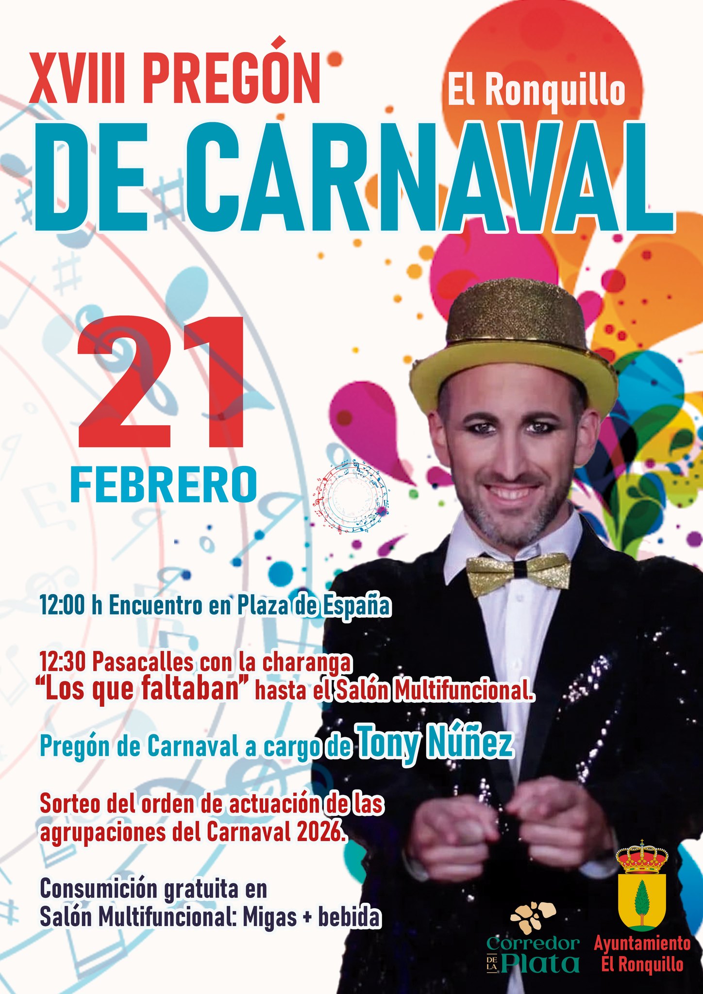 Recuerda que este sábado comienza la programación del Carnaval de El Ronquillo con el pregón de Carnaval 2026.