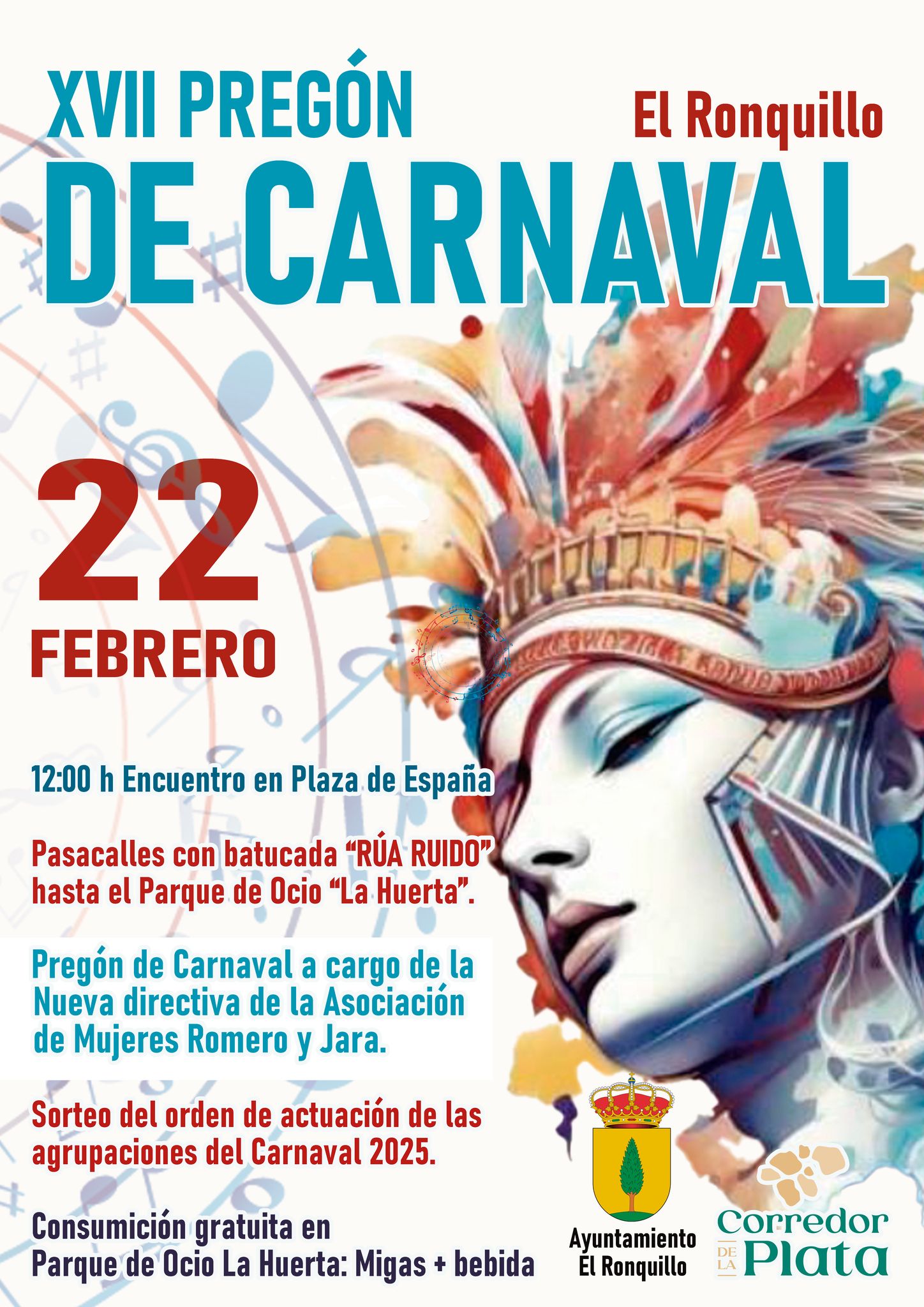 Después del pregón se realizará el sorteo de orden de actuación de las agrupaciones del Carnaval de El Ronquillo 2025 y cerraremos las actividades con la degustación de migas y bebida gratuitas para todos los asistentes al pregón.
