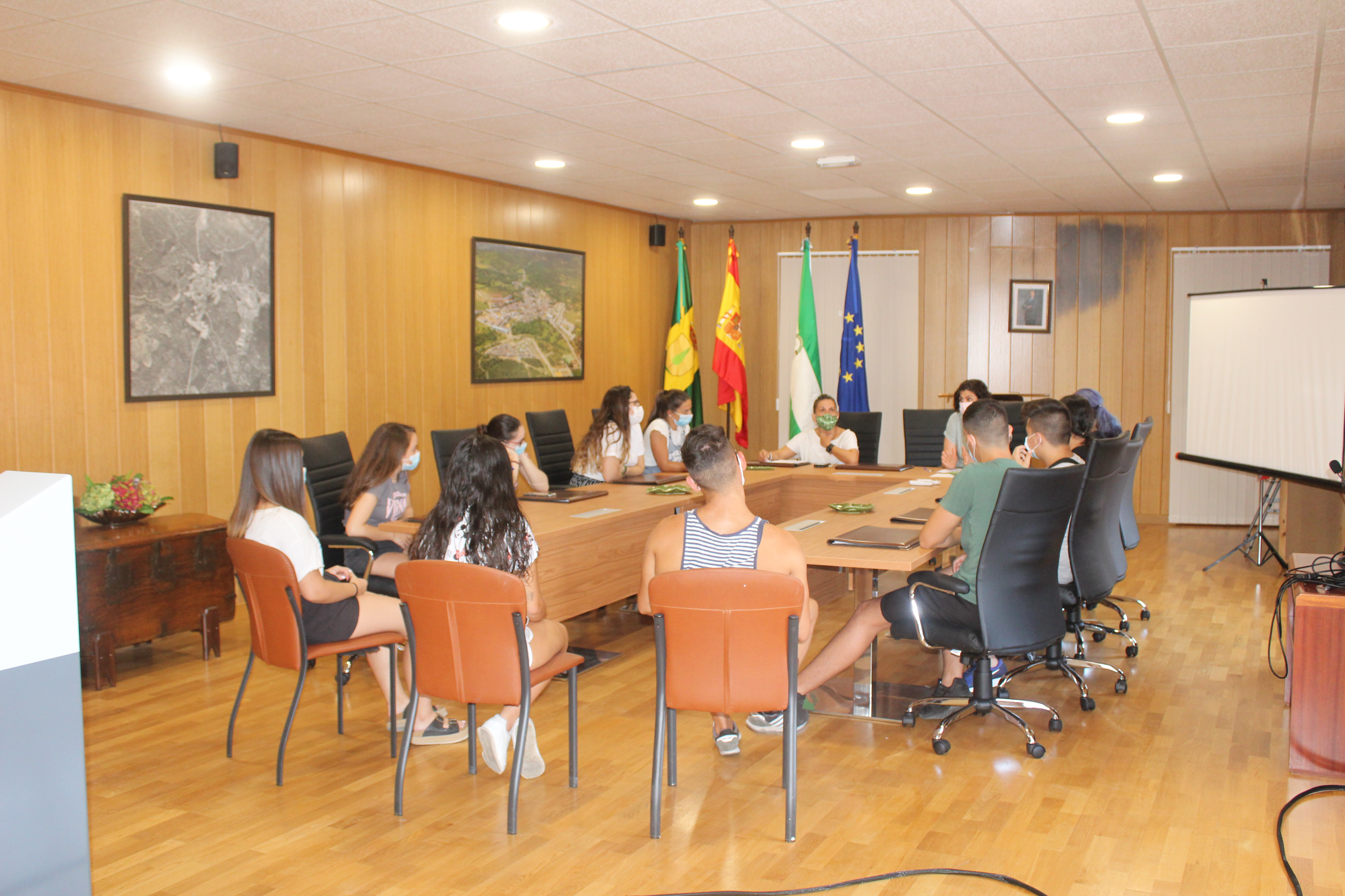 La Teniente de Alcalde, María Luis Ros, y la Técnico del Ayuntamiento, Maricruz Sánchez, se han reunido hoy con l@s solicitantes del programa "Primera Experiencia Laboral" que dará comienzo a partir de hoy.