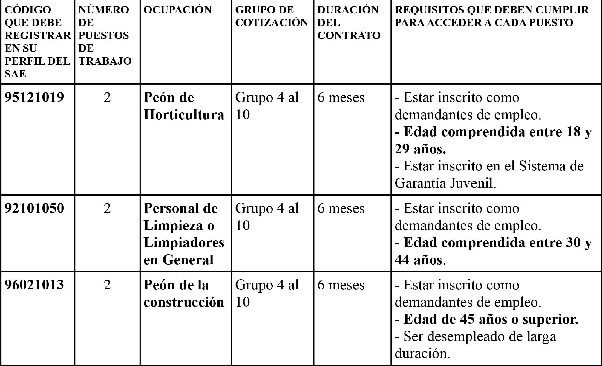 - 2 personas de entre 18 y 29 años como peón de horticultura