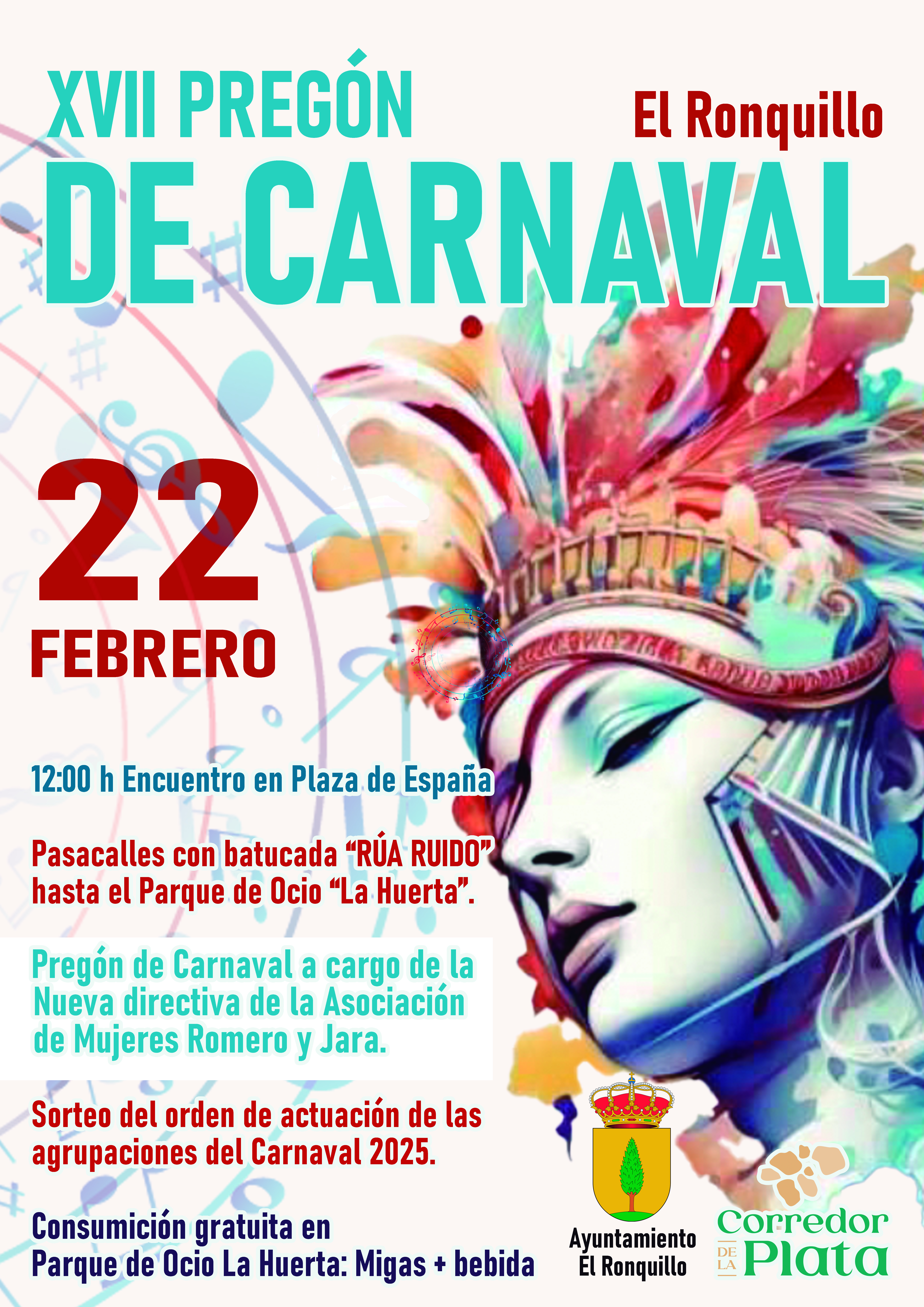 Después del pregón se realizará el sorteo de orden de actuación de las agrupaciones del Carnaval de El Ronquillo 2025 y cerraremos las actividades con la degustación de migas y bebida gratuitas para todos los asistentes al pregón.