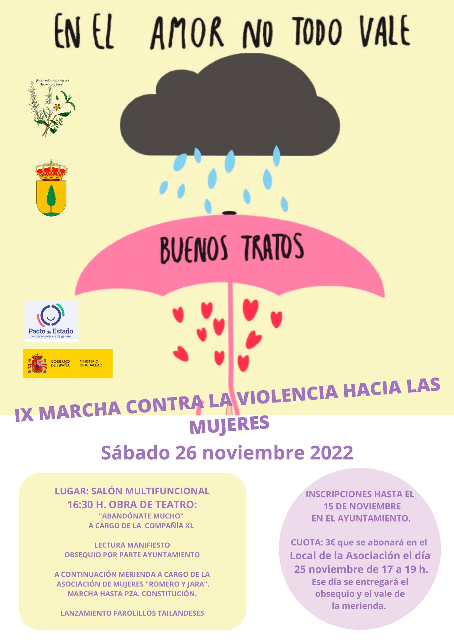 Cuota: 3 € (Se abonará el viernes 25 de noviembre de 5 a 7, en el local de la Asociación de Mujeres a la entrega del vale de la merienda y de un obsequio por parte del Ayuntamiento para tod@s l@s participantes).
