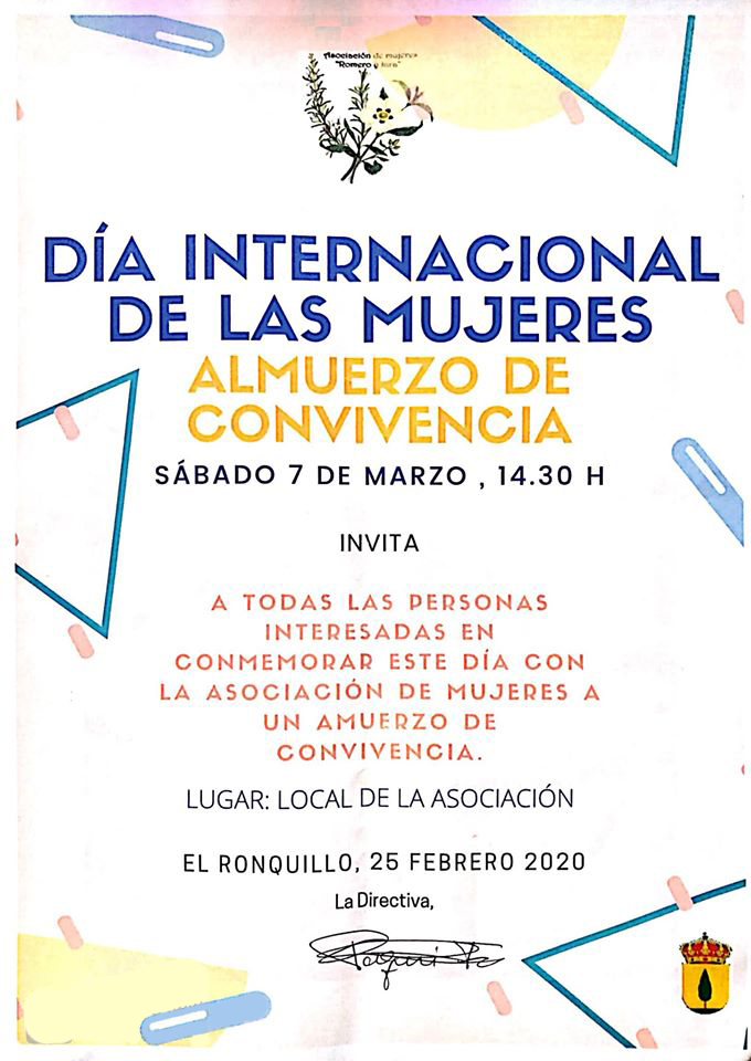 La Asociación de Mujeres Romero y Jara organiza para conmemorar del Día de la Mujer, un almuerzo de convivencia al que invita a todas las personas interesadas.