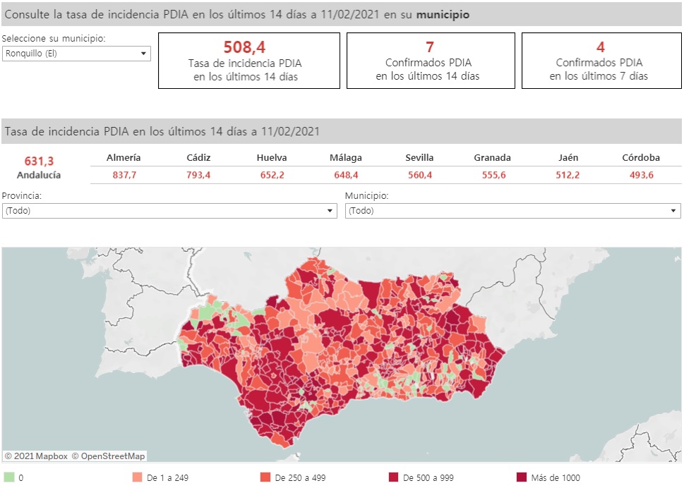 El portal IECA de la Junta de Andalucía publica a día de hoy un total de 42 positivos por coronavirus en El Ronquillo desde el inicio de la pandemia.