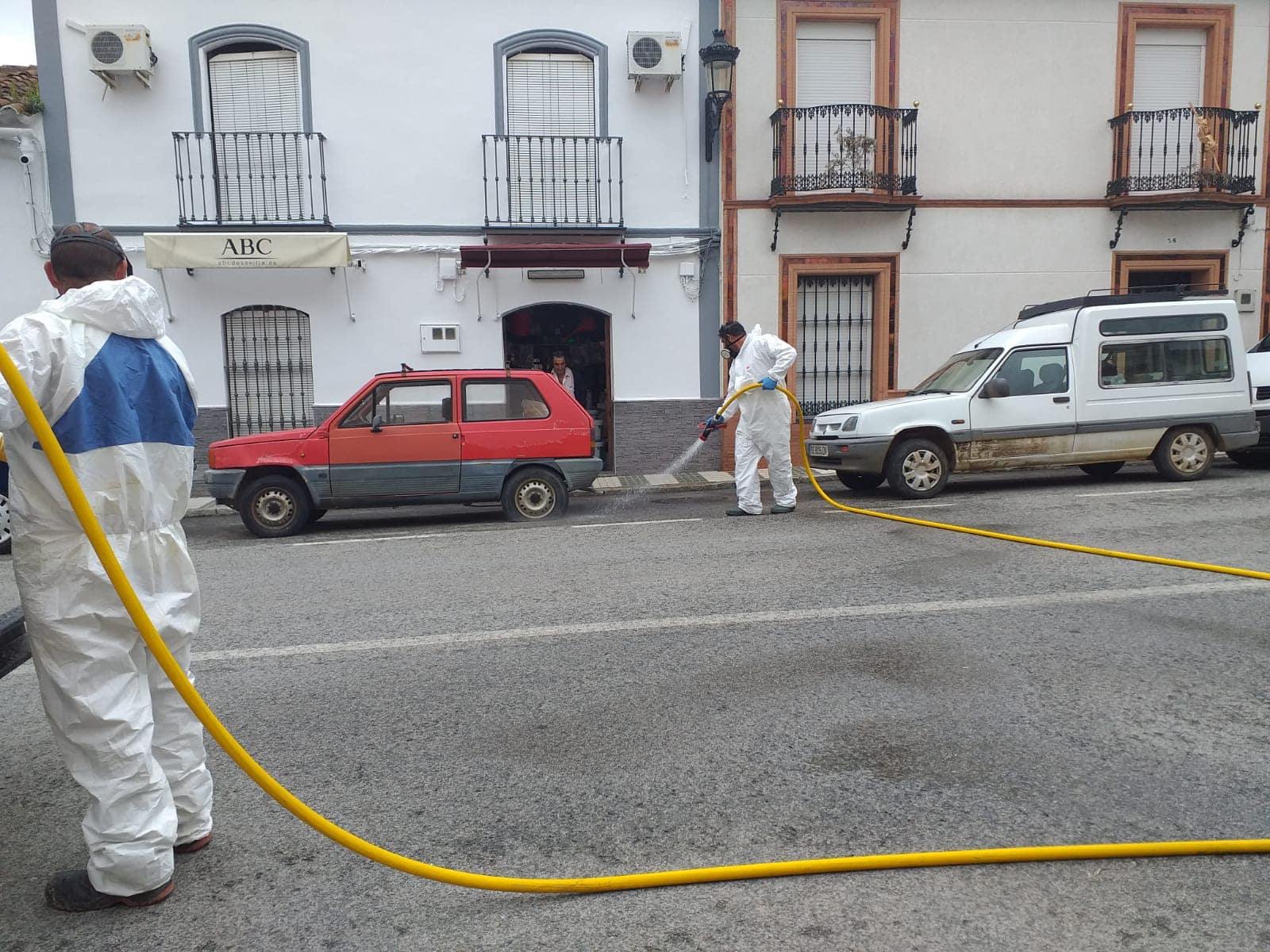 El tiempo permitió el pasado viernes 17 de abril, volver a realizar trabajos de desinfección en el municipio, centrándonos en esta ocasión en las zonas más transitadas, zonas comerciales y residencia de la tercera edad.