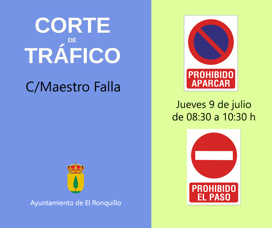 Recordamos a todos los vecinos que mañana está prohibido el estacionamiento en toda la calle Maestro Falla desde las 08:30 a las 10:30 horas de la mañana por tránsito de vehículos pesados.