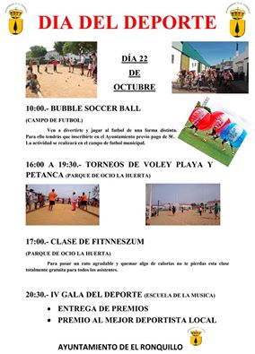 El Ayuntamiento de El Ronquillo celebrará el próximo sábado 22 de octubre el Día del Deporte.