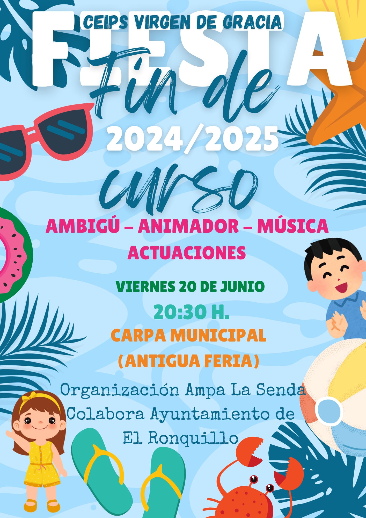 FIESTA FIN DE CURSO Este viernes, 20 de junio, a partir de las 20:30 h en la Carpa Municipal.