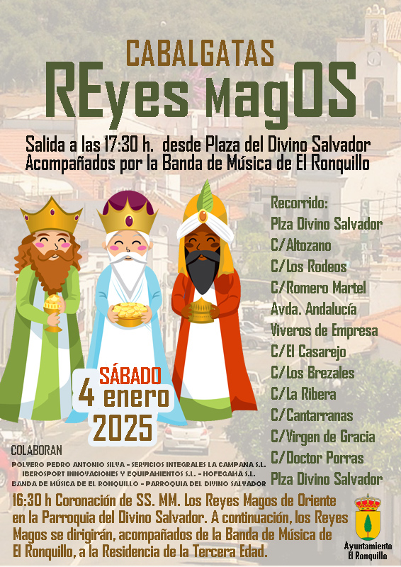 Desde el Ayuntamiento de El Ronquillo informamos que las Cabalgatas de Reyes Magos de El Ronquillo se han adelantado al sábado 4 de enero con el mismo horario: