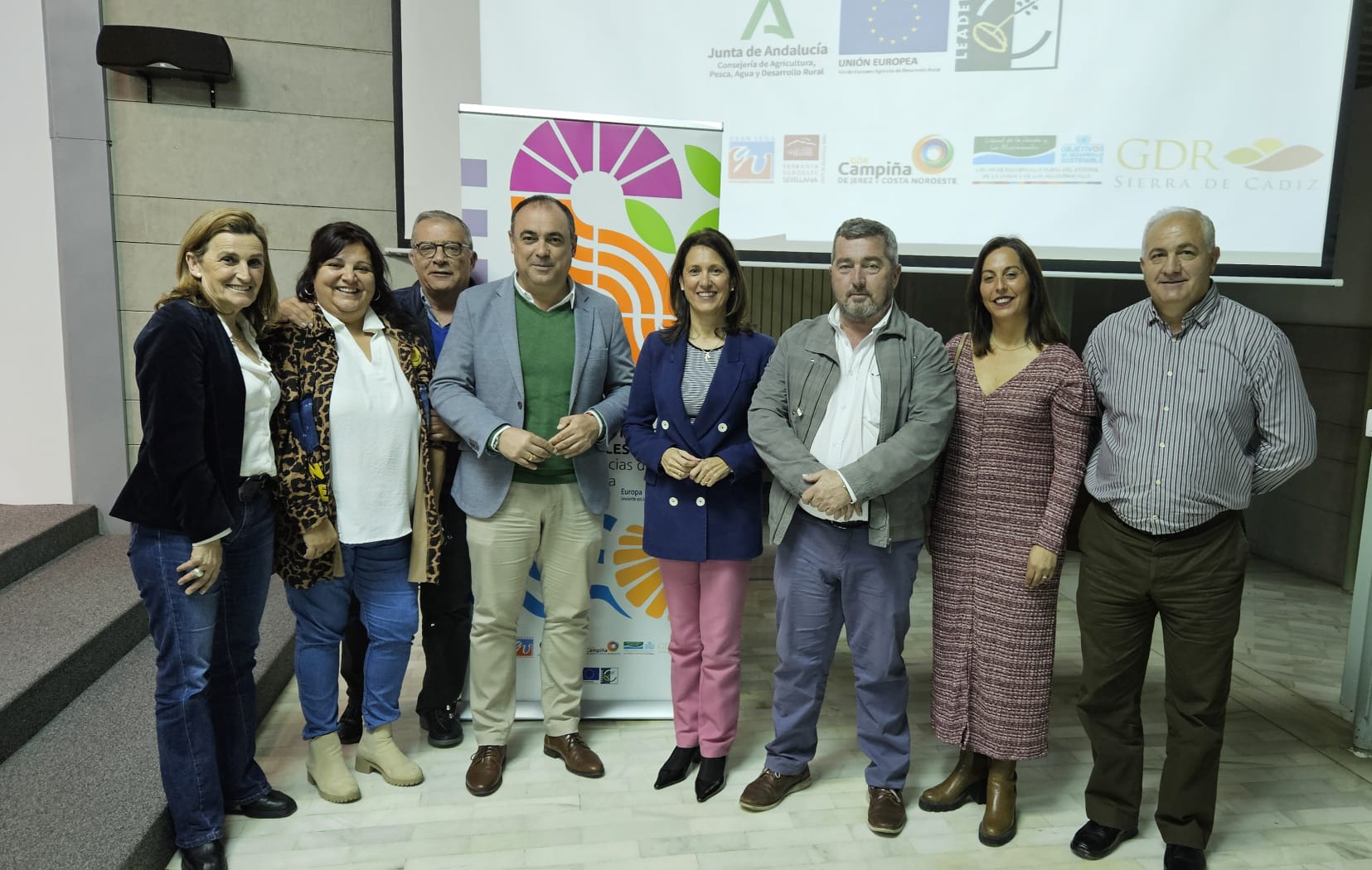 En el acto estuvieron presentes la Delegada Territorial de Agricultura, Ganadería, Pesca y Desarrollo Sostenible, Isabel Solís, la Diputada de Cohesión Social, Encarnación Fuentes, y Alcaldes y Concejales de los grupos de desarrollo rural de las provincias de Sevilla y Cádiz.