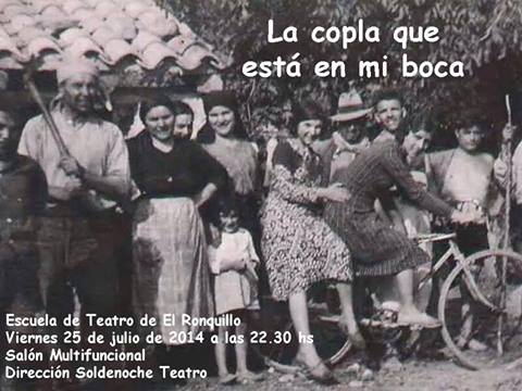 Escuela de Teatro Municipal de El Ronquillo, dirigida por la Compañías Soldenoche Teatro, presentará este viernes su nueva muestra de teatro "La Copla que está en mi boca".
