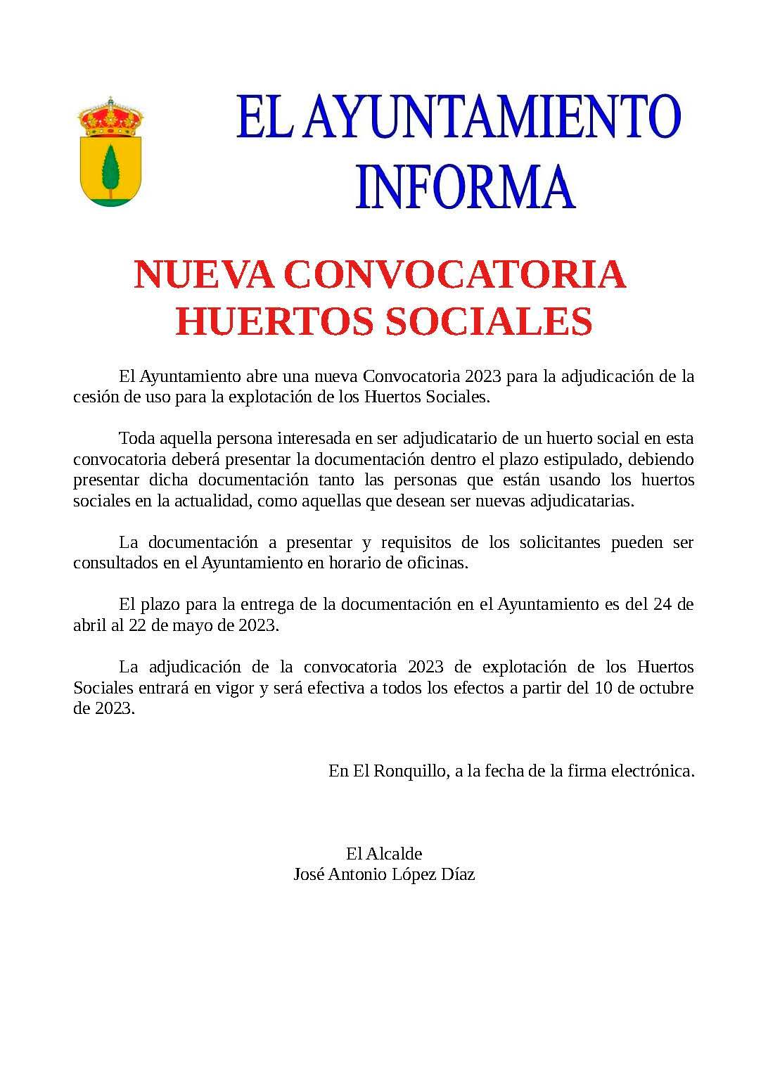 La adjudicación de la convocatoria 2023 de explotación de los Huertos Sociales entrará en vigor y será efectiva a todos los efectos a partir del 10 de octubre de 2023.