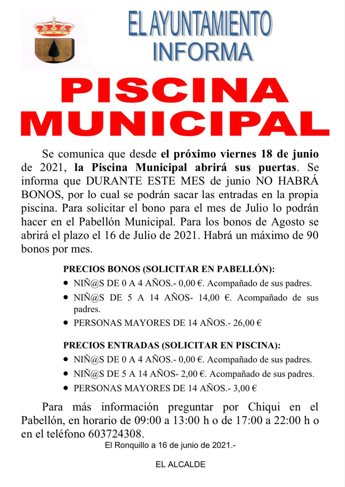 PISCINA MUNICIPAL: APERTURA EL VIERNES 18 DE JUNIO