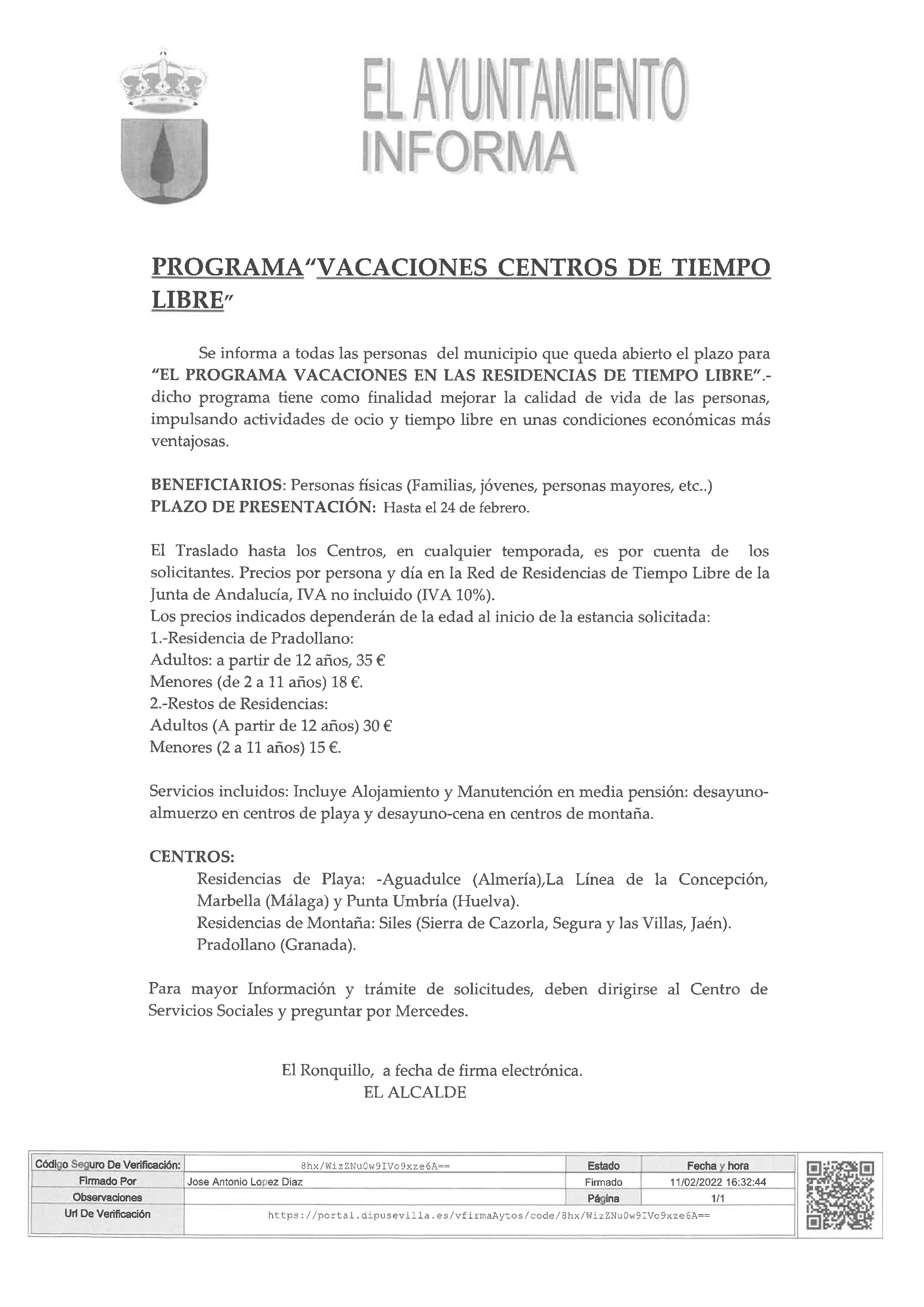 Solicitudes en el Centro de Servicios Sociales hasta el 24 de febrero.