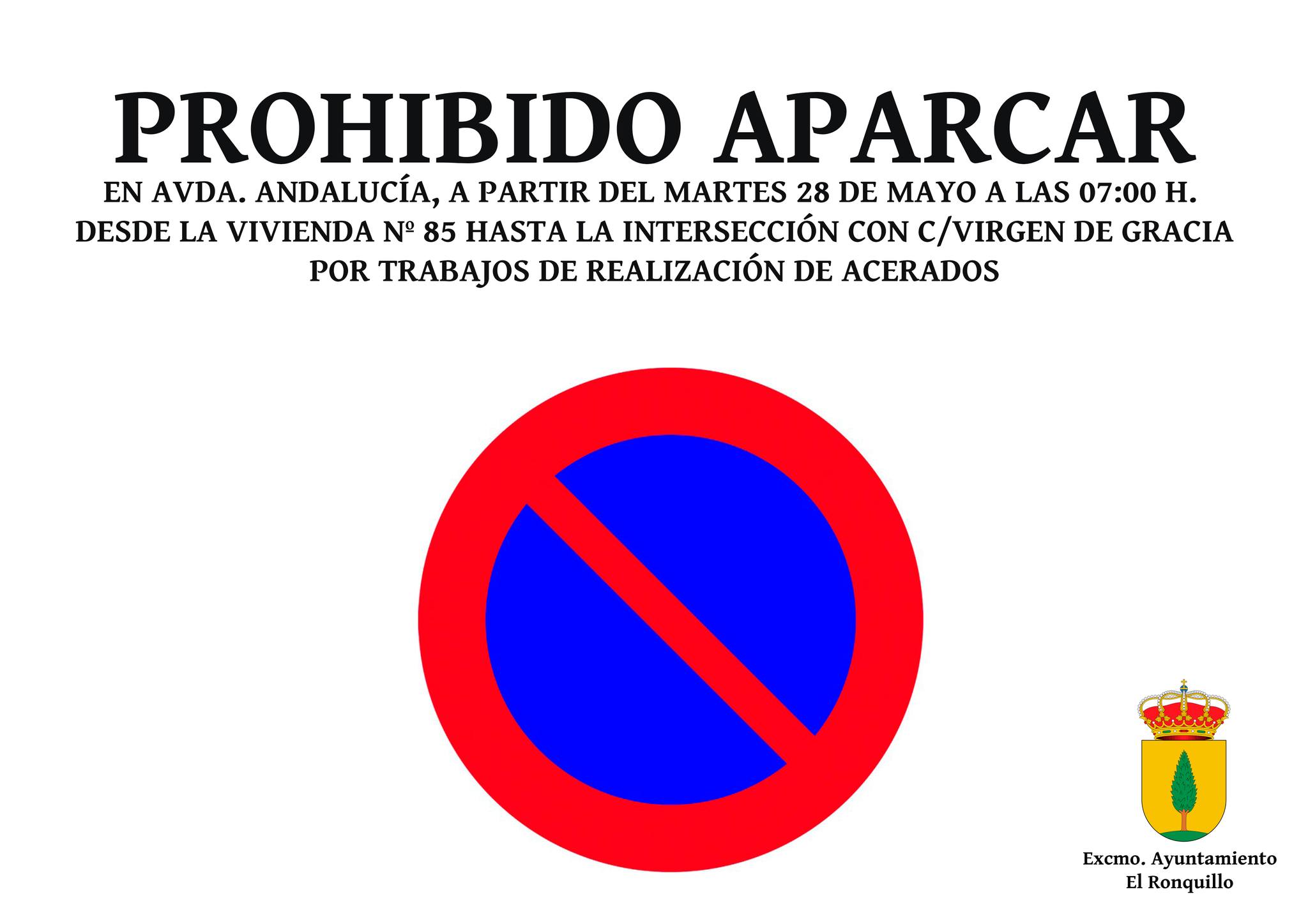PROHIBIDO APARCAR EN AVDA. ANDALUCÍA, A PARTIR DE MAÑANA, MARTES 28 DE MAYO, A LAS 07:00 H.