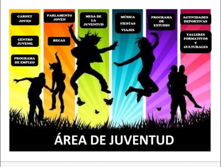 Carnet joven, becas, programa de estudio, mesa de la juventud, programas de empleo, centro juvenil, actividades deportivas⛹️♂️, talleres formativos y culturales, parlamento joven, música, fiestas y viajes✈.
