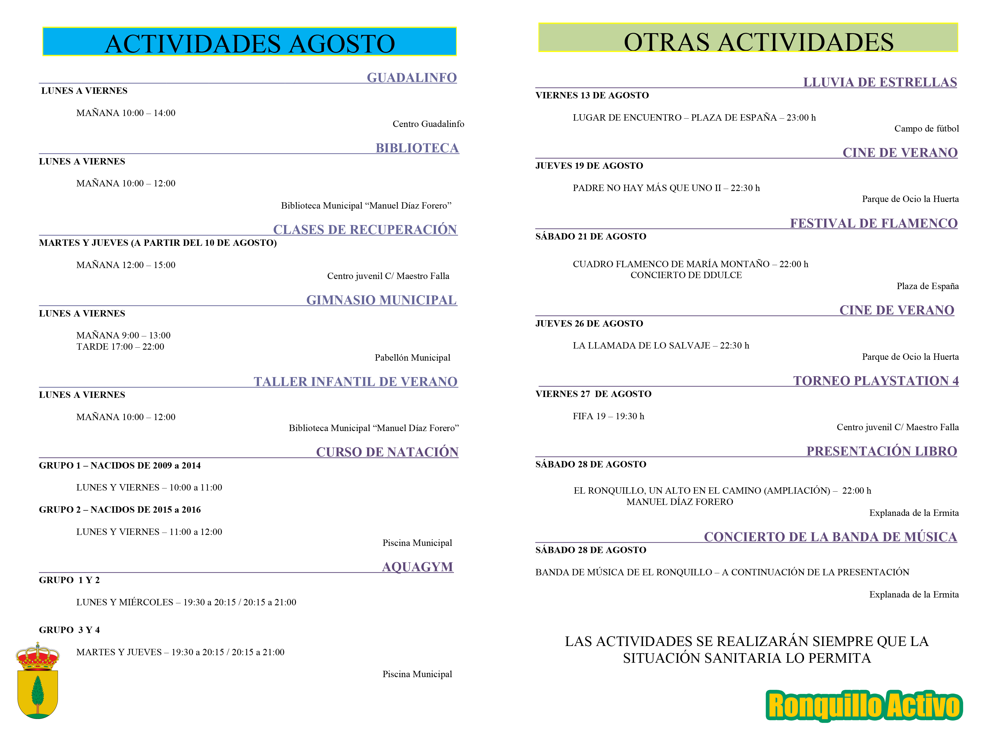 El Ayuntamiento de El Ronquillo te anima a participar en las actividades del mes de agosto.