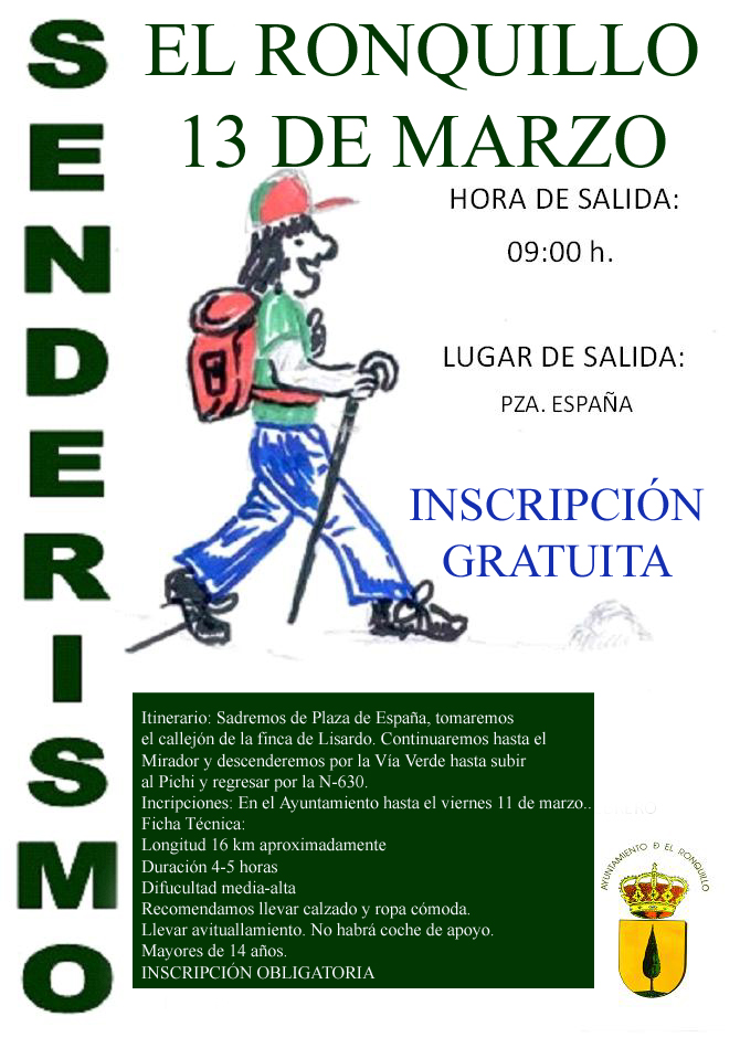 Inscripciones: En el Ayuntamiento de El Ronquillo hasta el viernes 11 de mayo. Teléfono 954 13 10
