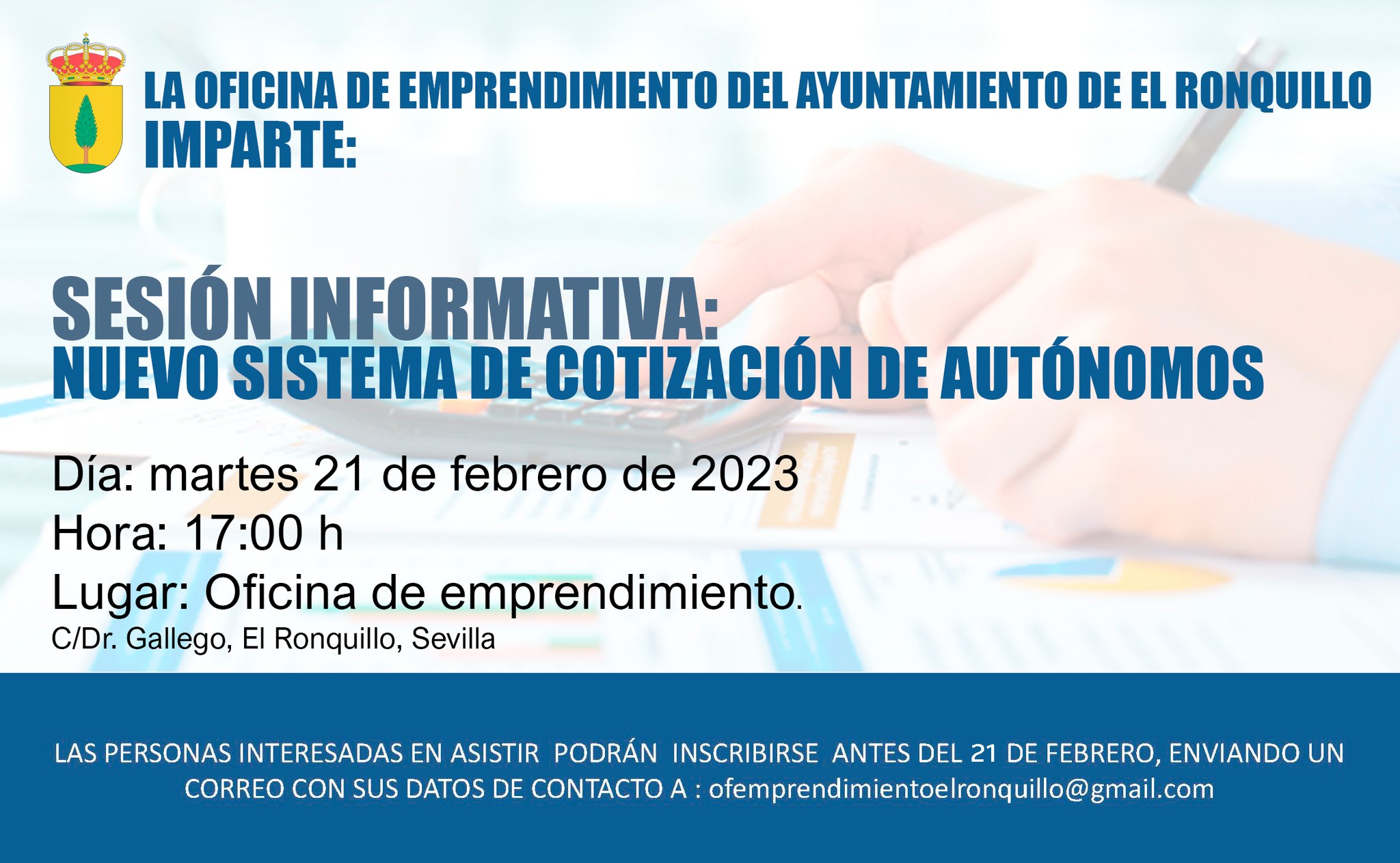 El Ayuntamiento de El Ronquillo organiza una SESIÓN INFORMATIVA SOBRE EL NUEVO SISTEMA DE COTIZACIÓN DE AUTÓNOMOS