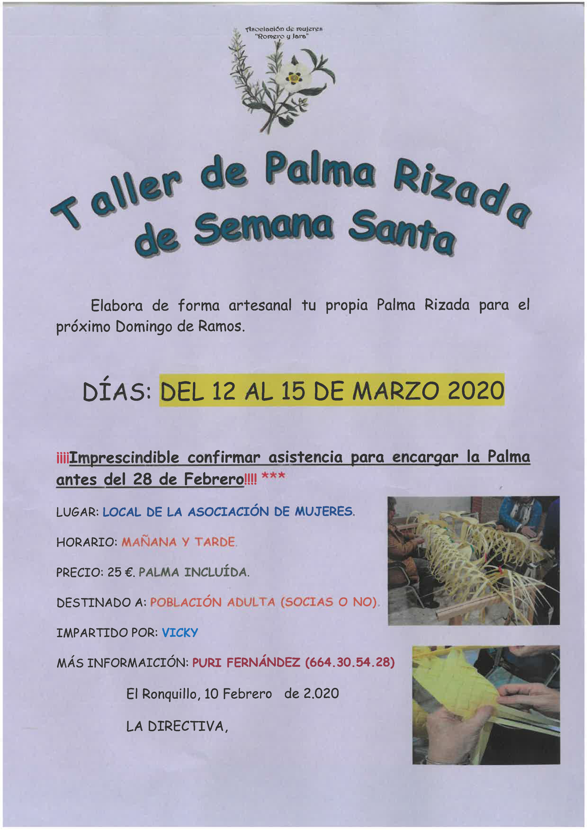 Imprescindible confirma asistencia para encargar la Palma antes del 28 de febrero.