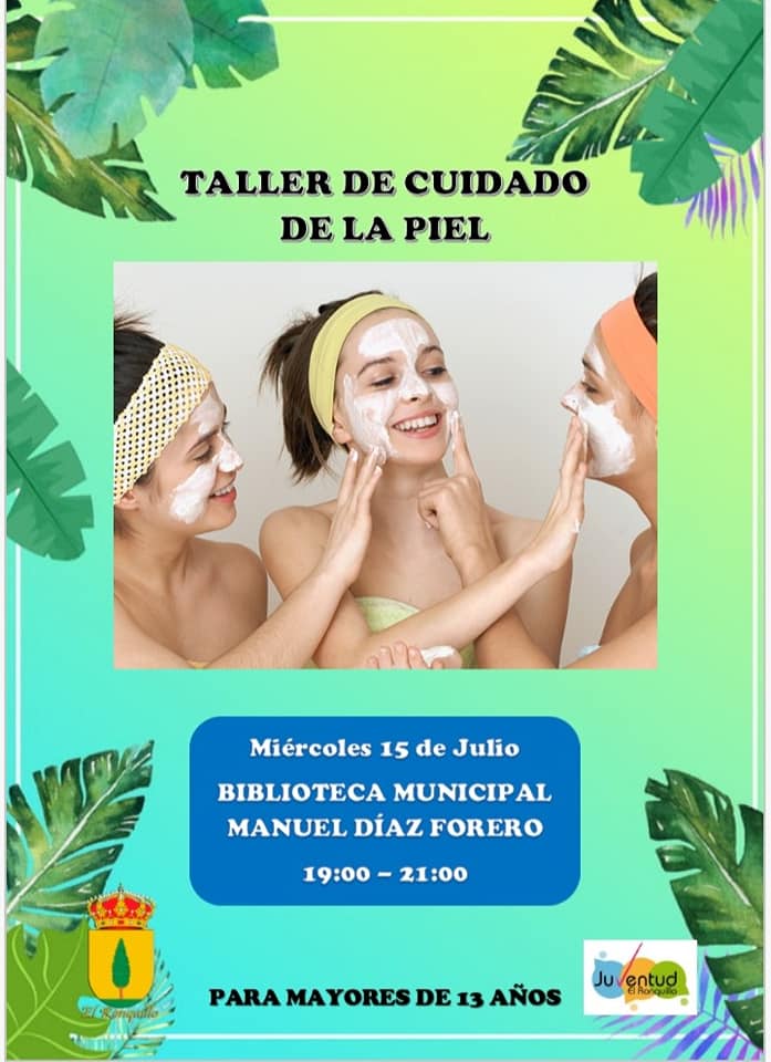 Esta tarde el Área de Juventud celebra un Taller de Cuidado de la Piel, para jóvenes a partir de 13 años.