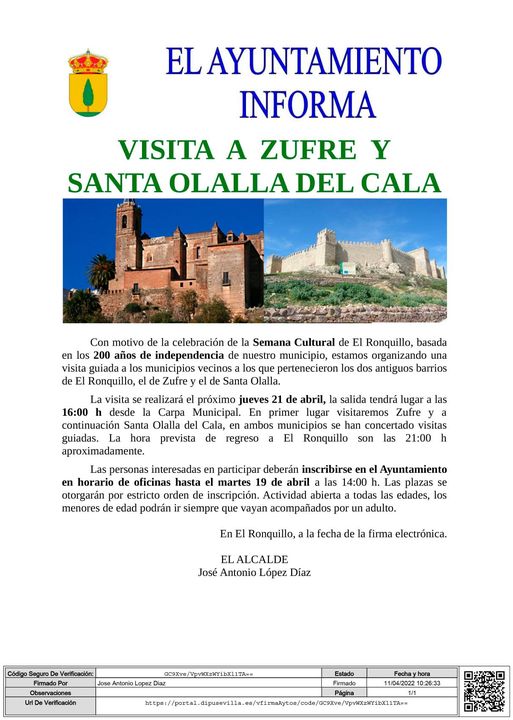 VISITA A ZUFRE Y SANTA OLALLA DEL CALA